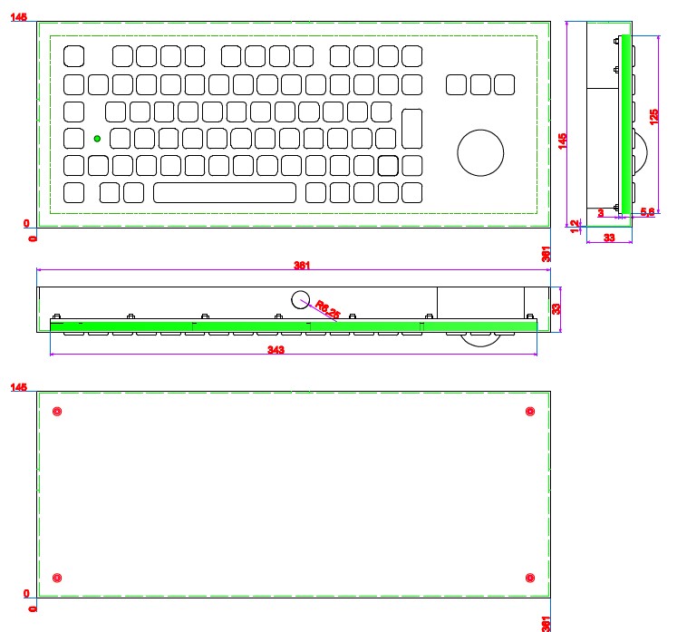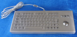 83 keys compact format IP68 dynamic vandal proof stainless steel industrial keyboard with IP68 dynamic rated washable 38.0mm stainless steel optical trackball module with 800 DPI resolutions for fast and accurate cursor position with extremely smooth operation without any noise, functional keys F1, F2, F3…F10, F11, F12 are on the top line for easy operation, industrial PCB with carbon-on-gold key switch technology with long stroke (2.0mm) with extremely good tactile feeling for fast and accurate data input without any noise, 3 mouse buttons designed for right & left clicking and scrolling up and down with ball rolling, movable stand alone DESK TOP VERSION, or mountable desktop with mounting holes on the bottoms for fixing. Which is good for outdoor application with direct rain and very harsh environments with humidity, much dynamic water, oil, dirt, salt mist etc, IP68 dynamic trackball module with direct drain pipe is optional, without metal parts inside to avoid rust risk and anti-salt spray corrosion.